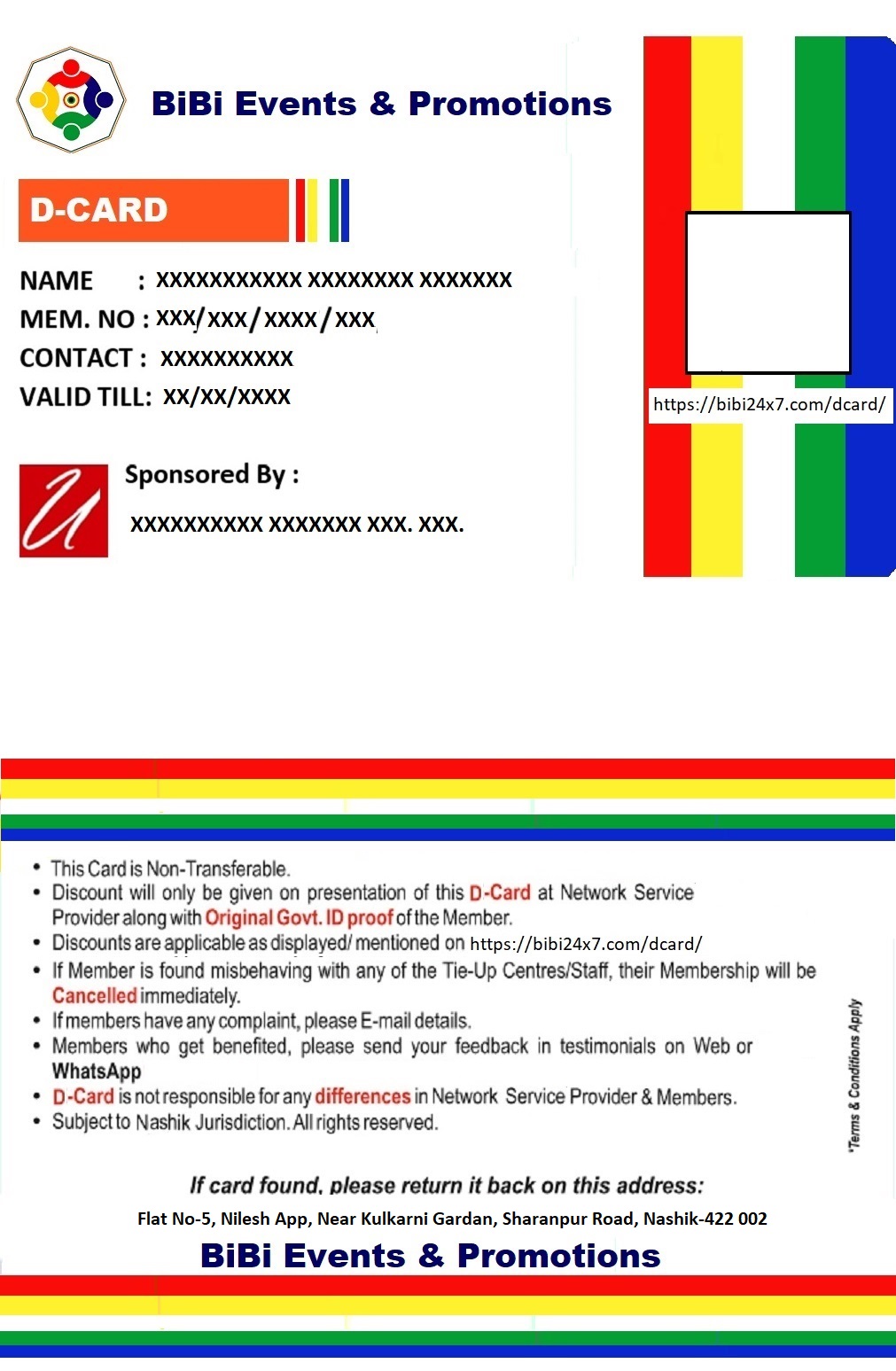 1. D Card is an E-CARD & is issued on the basis of the information given by the applicant. It is an ID for the activities of BiBi and its MEMBERS.